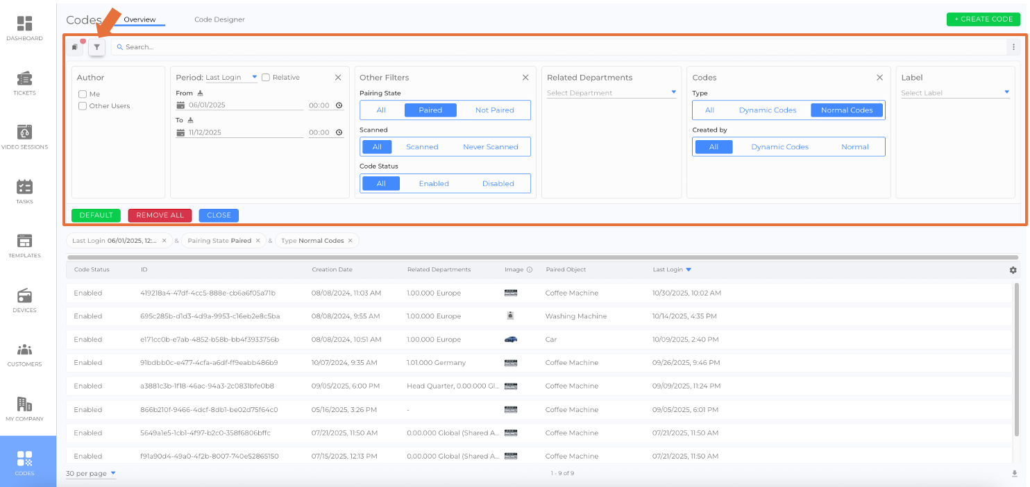 These improvements make navigation in large datasets easier and provide better visibility of the current search context. The enhancements apply to all list views across the Back Office (e.g., Devices, Codes, Customers, Templates).