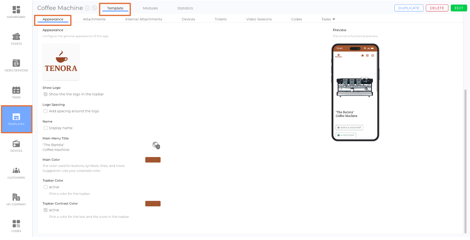 The Appearance settings allow you to align the platform's look and feel with your company's corporate identity. By customizing various visual elements, you can ensure a seamless and professional experience for code users.
