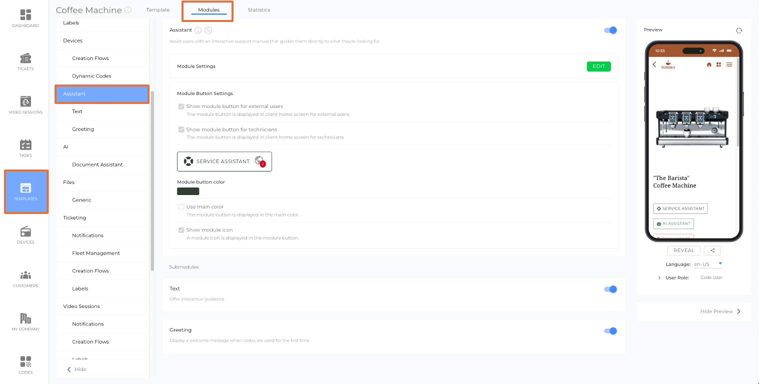 | (5) Module Buttons | Customize the buttons leading users to the respective modules. |