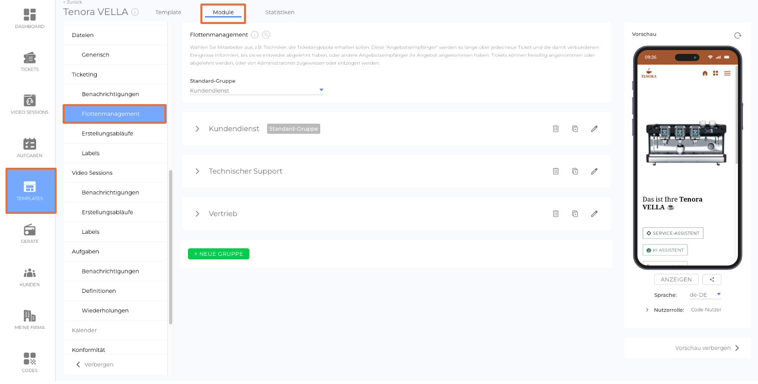 Gruppen werden im Submodul Flottenmanagement erstellt. Diese Gruppen legen fest, welche Mitarbeiter Angebote für bestimmte Serviceanfragen erhalten. (Bild) - Zuweisung zu Ticket-Erstellungsabläufen: