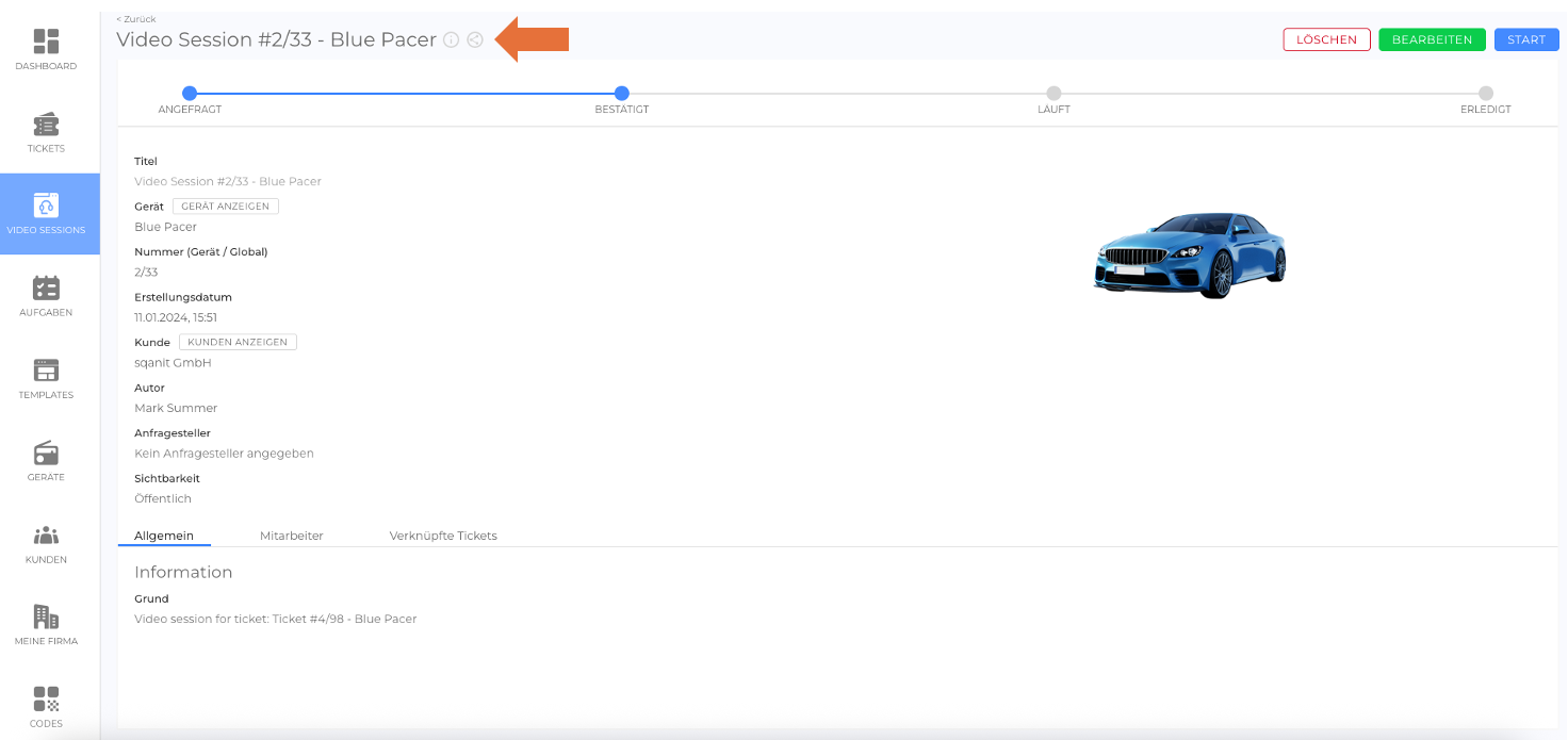 Für weitere Details lesen Sie den Artikel Video Session Detailansicht (Artikel).
