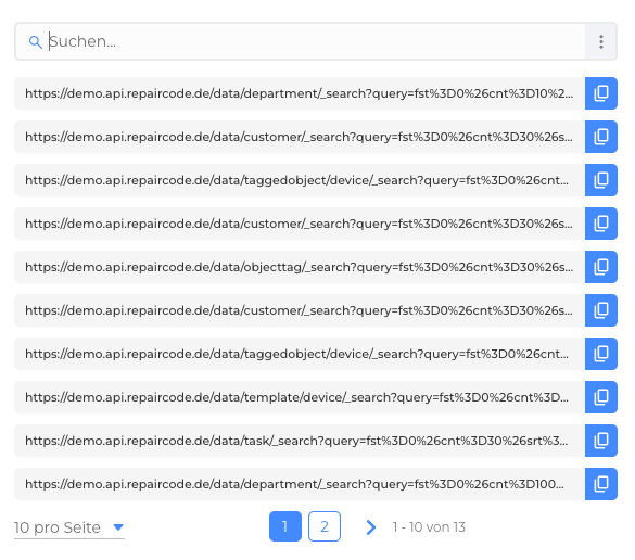 Dies ist besonders hilfreich, um das Suchverhalten zu analysieren, Suchanfragen in der Anwendung nachzuvollziehen oder sie für API-Aufrufe und externe Tools wiederzuverwenden.