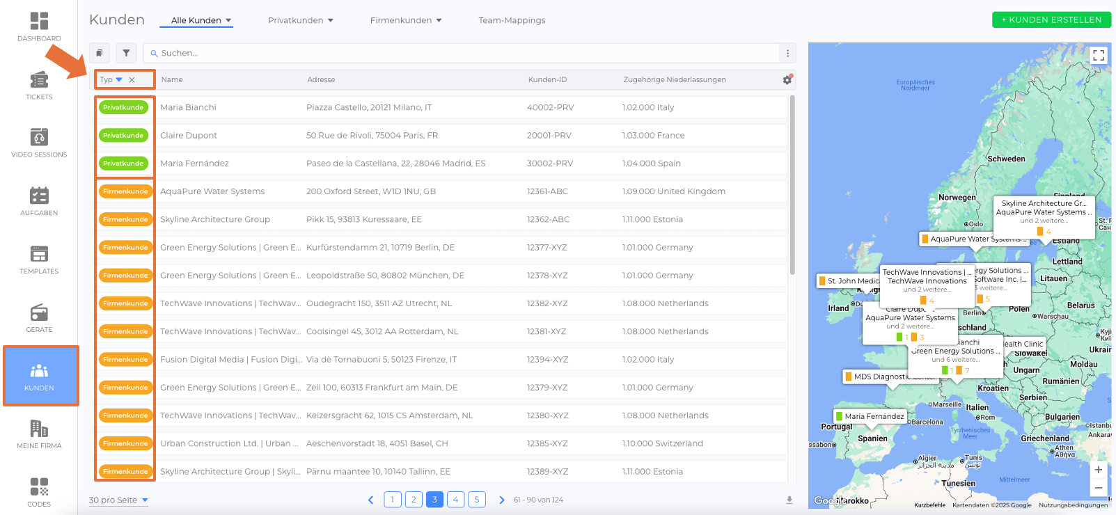 - Wählen Sie Kunden im Seitenmenü aus.