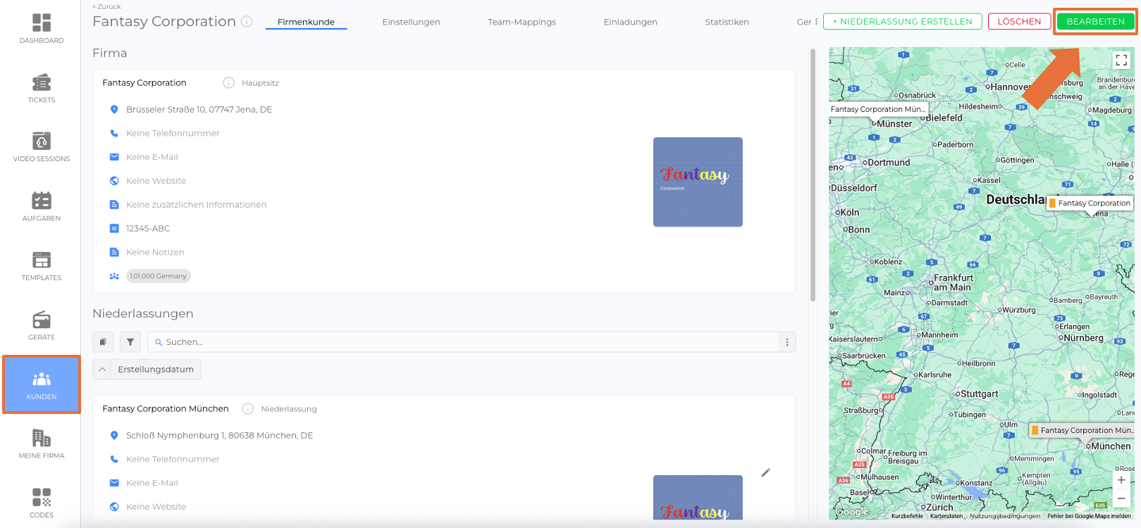 - Wählen Sie den Firmenkunden, den Sie bearbeiten möchten.