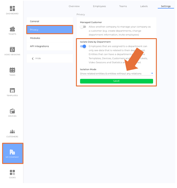 - The "Isolate Data by Departments" feature can be activated or deactivated in the company settings.