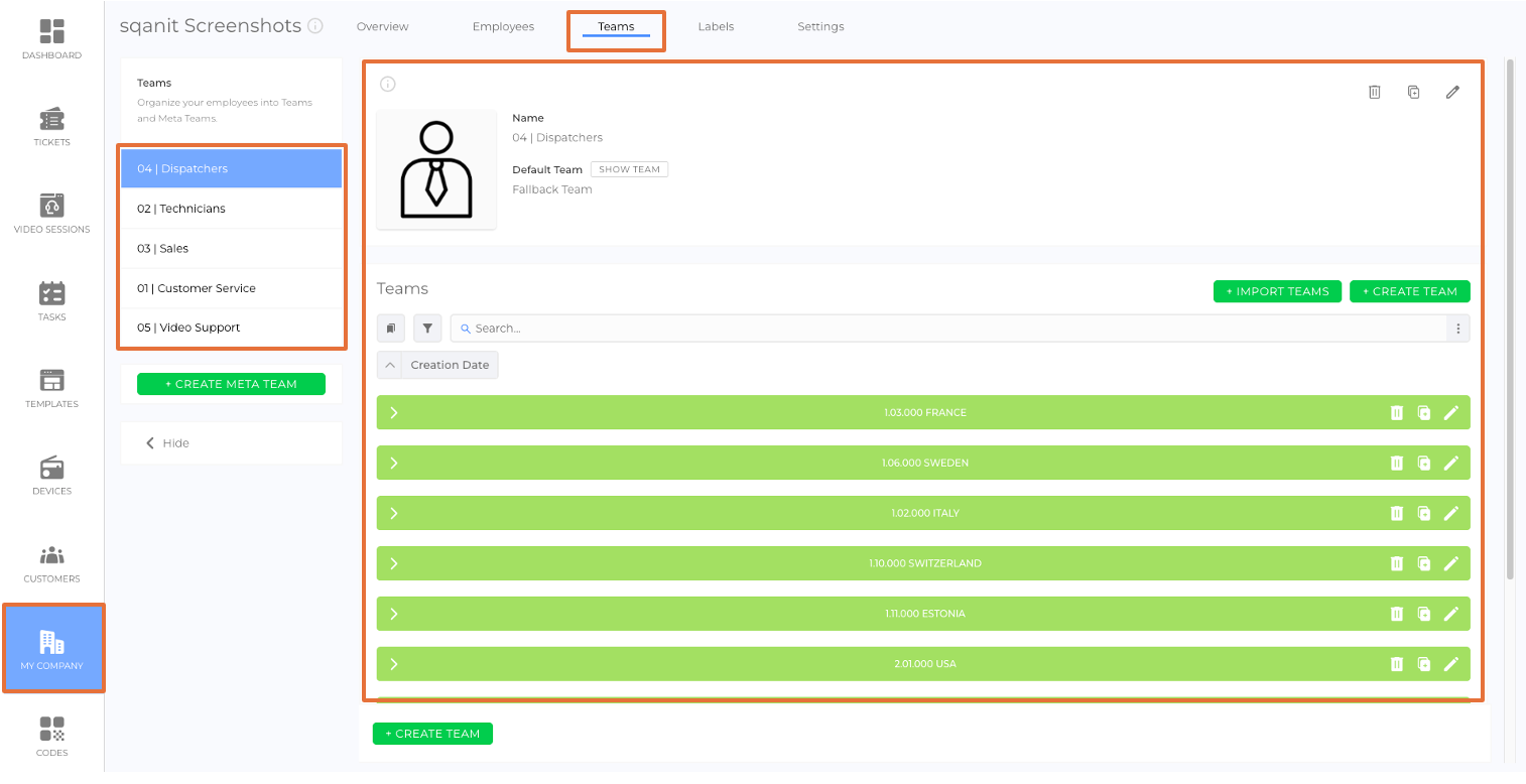 A Meta Team is a collection of teams grouped together to represent a broader category or organizational function. Meta Teams are used to structure teams with the same tasks but different responsibilities, such as geographic regions.